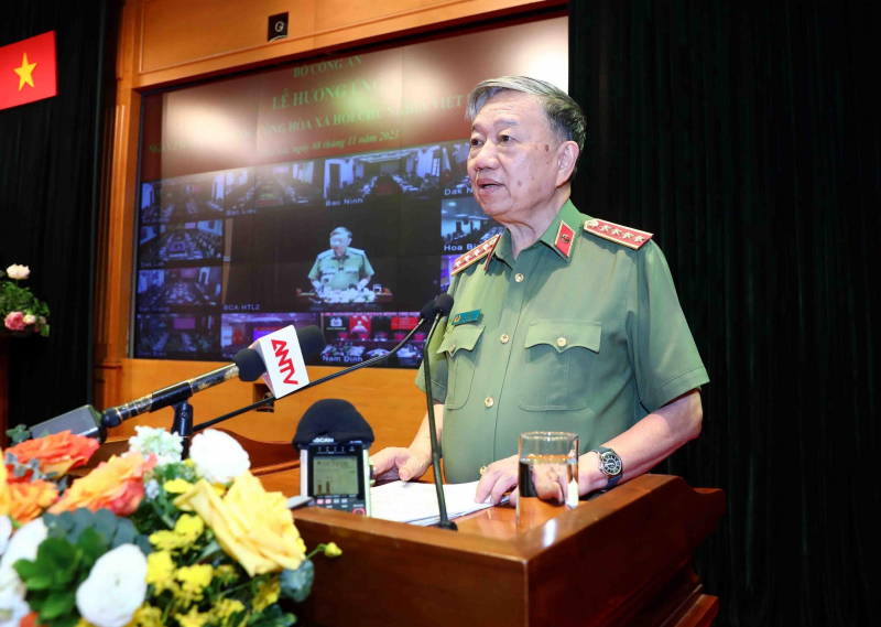 Bộ trưởng Tô Lâm phát biểu tại buổi lễ. Ảnh: Bộ Công An |
