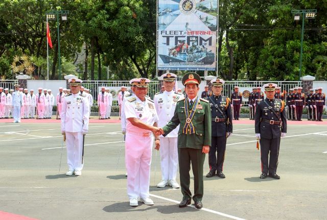 Đại tướng Phan Văn Giang và đoàn đã đến thăm trụ sở Bộ Tư lệnh Hải quân Philippines. Ảnh: VOV |