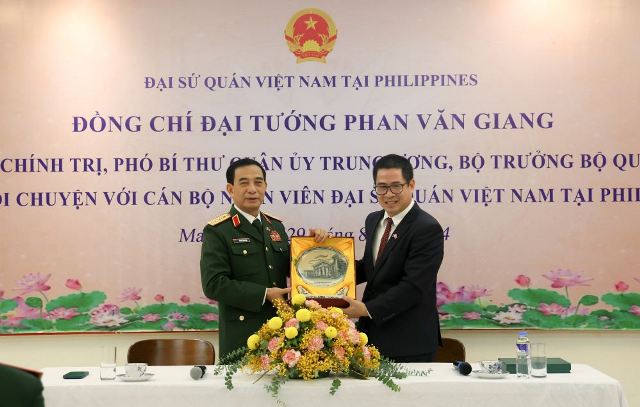 Trao đổi với nhà lãnh đạo Philippines, Đại tướng Phan Văn Giang khẳng định Việt Nam luôn coi trọng quan hệ đối tác chiến lược với Philippines; mong muốn Chính phủ Philippines và cá nhân Tổng thống Ferdinand Romualdez Marcos Jr. tiếp tục quan tâm, ủng hộ Bộ Quốc phòng hai nước ký kết thỏa thuận về hợp tác quốc phòng thay thế cho thỏa thuận đã ký năm 2010, ủng hộ việc thiết lập cơ chế đường dây nóng giữa Cảnh sát biển Việt Nam và Lực lượng Bảo vệ bờ biển Philippines nhằm nâng cao hiệu quả phối hợp xử lý các vấn đề an ninh phi truyền thống trên biển. Bộ trưởng Phan Văn Giang cũng mong muốn hai bên tiếp tục tăng cường phối hợp, xử lý nhân đạo đối với các trường hợp ngư dân vi phạm vùng biển của nhau, kịp thời chia sẻ thông tin, lập trường về các vấn đề cùng quan tâm.