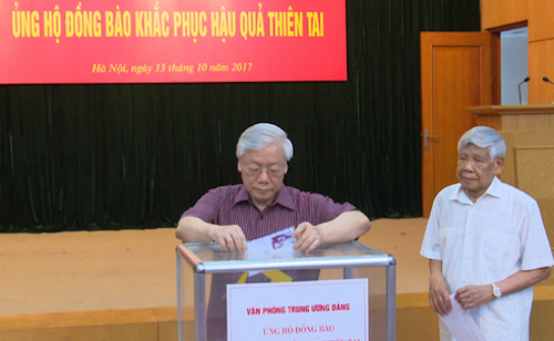 Tổng Bí thư Ban chấp hành Trung ương Đảng Cộng sản Việt Nam Nguyễn Phú Trọng; các nguyên lãnh đạo Đảng, Nhà nước cùng cán bộ, công chức, viên chức, người lao động của cơ quan Văn phòng Trung ương Đảng tham dự và quyên góp ủng hộ đồng bào các tỉnh miền núi phía Bắc và Bắc Trung bộ mỗi người ít nhất một ngày lương.
