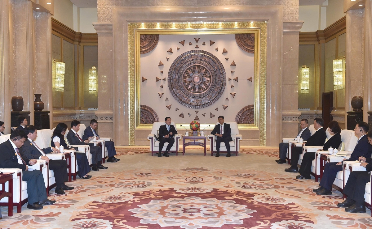 Trong khuôn khổ dự Hội chợ Trung Quốc - ASEAN (CAEXPO) và Hội nghị Thượng đỉnh Thương mại và Đầu tư Trung Quốc - ASEAN (CABIS) lần thứ 22, ngày 16/9, tại thành phố Nam Ninh, Trung Quốc, Phó Thủ tướng Mai Văn Chính gặp Bí thư Đảng ủy Khu tự trị dân tộc Choang Quảng Tây (Trung Quốc) Trần Cương.