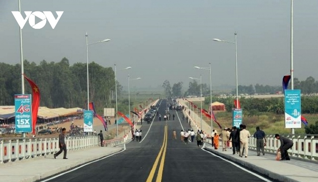 Cầu Long Bình - Chrey Thom thuộc địa phận hành phố Sampov Poun, tỉnh Kandal. Ảnh: Văn Đỗ/VOV-Phnom Penh |