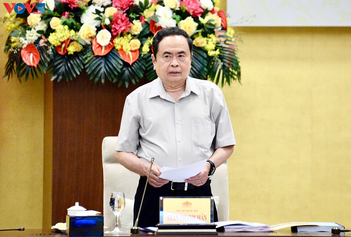 Chủ tịch Quốc hội Trần Thanh Mẫn phát biểu tại buổi làm việc. Ảnh: Lê Tuyết/VOV |