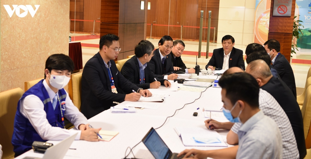 Bộ trưởng Y tế Nguyễn Thanh Long chủ trì cuộc họp trực tuyến với lực lượng y tế tại điểm cầu Hải Dương, Quảng Ninh. Ảnh: VOV |