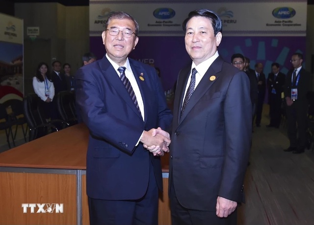 Sáng qua (16/11 theo giờ địa phương), nhân dịp dự Tuần lễ cấp cao Diễn đàn Hợp tác kinh tế châu Á - Thái Bình Dương (APEC) 2024 tại Lima (Peru), Chủ tịch nước Lương Cường có cuộc gặp Thủ tướng Nhật Bản Ishiba Shigeru.
