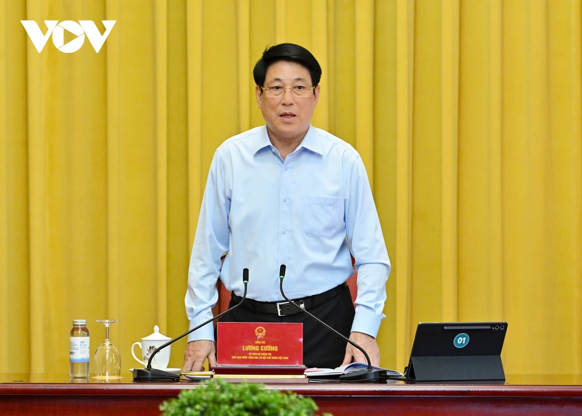 Chủ tịch nước Lương Cường phát biểu tại buổi làm việc. Ảnh: VOV |