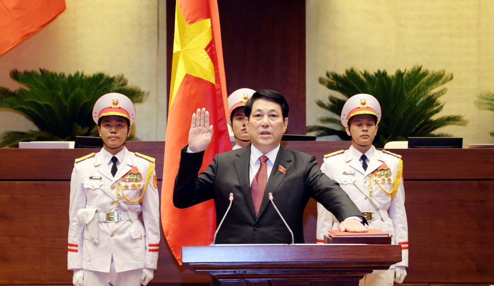 Trước yêu cầu ngày càng cao của sự nghiệp xây dựng và bảo vệ Tổ quốc, trên cương vị mới, như vừa tuyên thệ trước Quốc hội, đồng bào, đồng chí và cử tri cả nước; tôi sẽ nỗ lực hết sức mình, phấn đấu hoàn thành tốt nhiệm vụ Chủ tịch nước theo Hiến pháp nước Cộng hòa xã hội chủ nghĩa Việt Nam và nhiệm vụ được Đảng, Nhà nước, nhân dân tin tưởng giao phó; tiếp tục giữ gìn và tăng cường sự đoàn kết, thống nhất cao trong Đảng; cùng toàn Đảng, toàn dân, toàn quân tiếp tục chăm lo xây dựng và phát huy sức mạnh đại đoàn kết toàn dân tộc; xây dựng Nhà nước pháp quyền xã hội chủ nghĩa trong sạch vững mạnh, thực sự của nhân dân, do nhân dân và vì nhân dân; tăng cường sức mạnh quốc phòng - an ninh, xây dựng lực lượng vũ trang nhân dân cách mạng, chính quy, tinh nhuệ, hiện đại, luôn luôn là lực lượng chính trị, lực lượng chiến đấu tuyệt đối trung thành, tin cậy của Đảng, Nhà nước và nhân dân; xây dựng củng cố “thế trận lòng dân”, thế trận quốc phòng toàn dân và thế trận an ninh nhân dân vững chắc; thực hiện nhất quán đường lối đối ngoại độc lập, tự chủ, hòa bình, hữu nghị, hợp tác và phát triển, đa phương hóa, đa dạng hóa, chủ động và tích cực hội nhập quốc tế, bảo đảm cao nhất lợi ích quốc gia - dân tộc, Việt Nam là bạn, là đối tác tin cậy, thành viên tích cực, có trách nhiệm của cộng đồng quốc tế; kiên quyết, kiên trì bảo vệ vững chắc độc lập, chủ quyền, thống nhất, toàn vẹn lãnh thổ quốc gia, giữ vững môi trường hòa bình, ổn định để xây dựng và phát triển đất nước. Kiên định mục tiêu độc lập dân tộc và chủ nghĩa xã hội, phấn đấu xây dựng nước Việt Nam dân giàu, nước mạnh, dân chủ, công bằng, văn minh, phồn vinh, hạnh phúc.