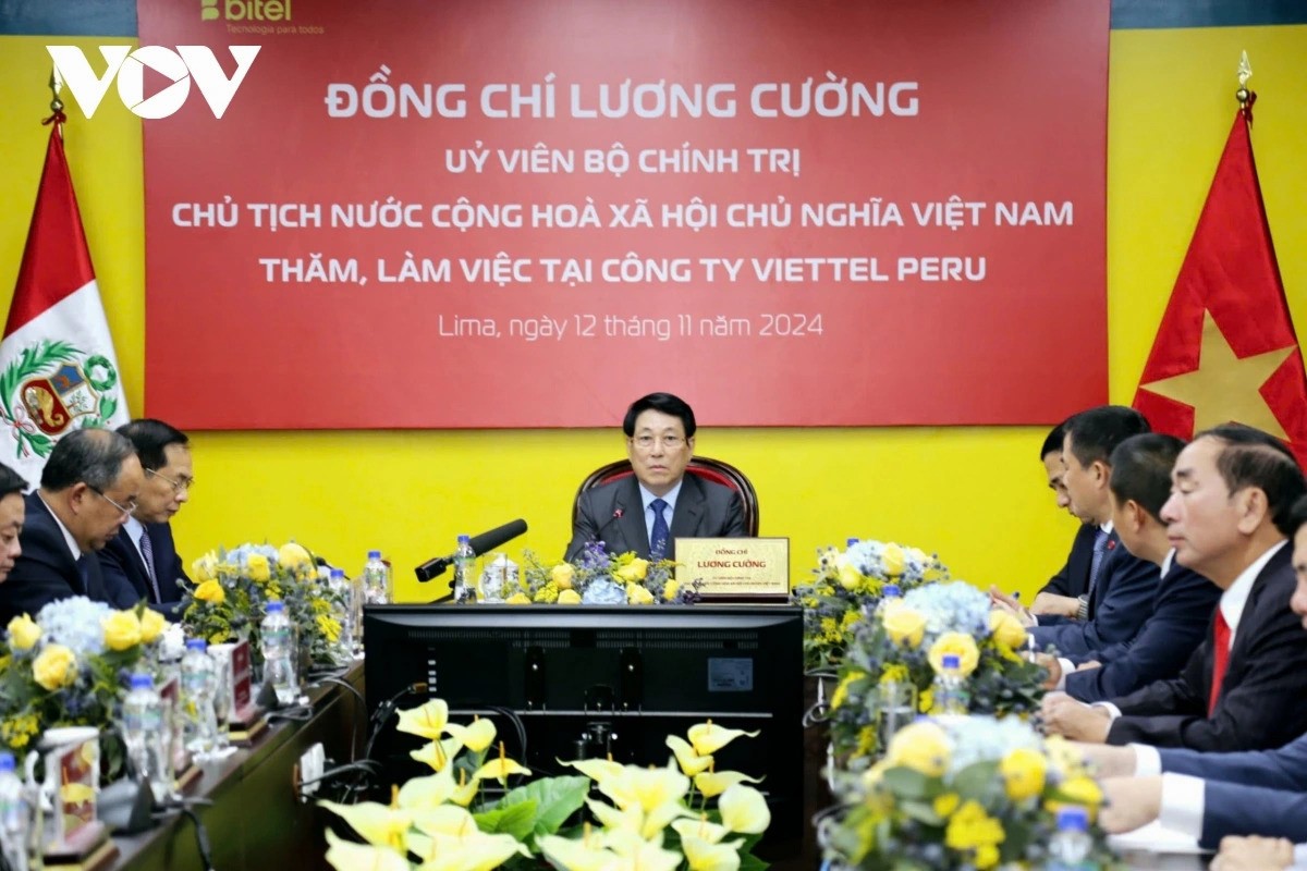 Trong khuôn khổ chuyến thăm chính thức Peru, chiều 12/11 (giờ địa phương) Chủ tịch nước Lương Cường tới thăm, làm việc với công ty Viettel Peru (Bitel) - liên doanh của Tập đoàn Công nghiệp - Viễn thông Quân đội (Viettel) tại Peru.