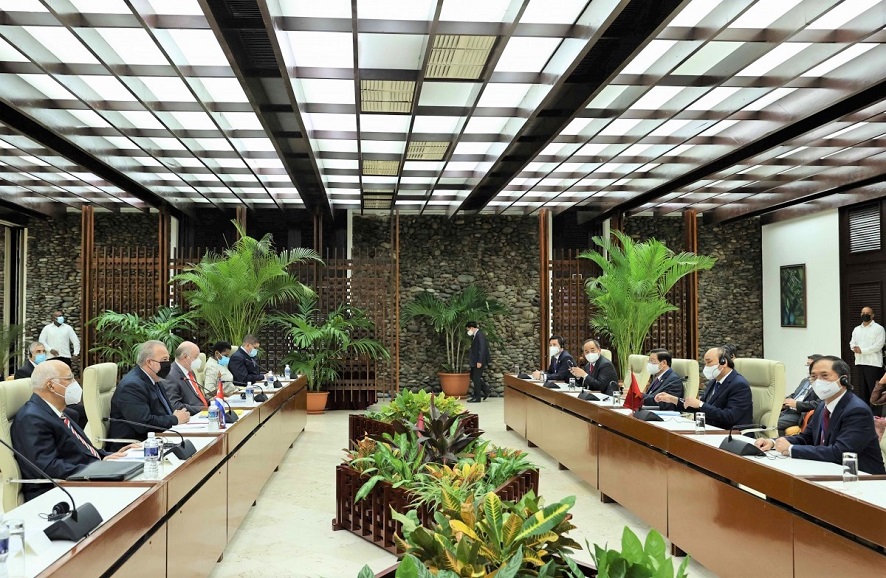 Chủ tịch nước Nguyễn Xuân Phúc mong muốn Chính phủ hai nước phối hợp chặt chẽ, triển khai hiệu quả các thỏa thuận cấp cao, các cơ chế hợp tác sẵn có, đặc biệt là nâng cao hiệu quả hoạt động của Ủy ban liên Chính phủ, góp phần đưa quan hệ hai nước phát triển ngày càng thực chất, nâng tầm hợp tác kinh tế, thương mại và đầu tư tương xứng với quan hệ chính trị tốt đẹp giữa hai nước. Chủ tịch nước Nguyễn Xuân Phúc đề nghị Cuba chuyển giao công nghệ sản xuất vaccine ngừa COVID-19; chuyển lời mời Thủ tướng Manuel Marrero Cruz thăm Việt Nam.