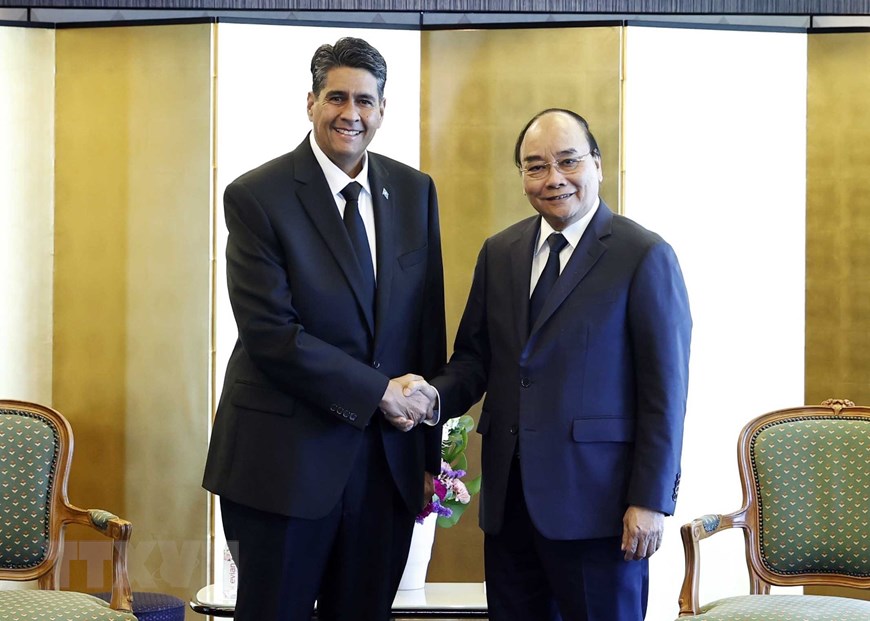 Chủ tịch nước Nguyễn Xuân Phúc gặp Tổng thống Palau, Surangel Whipps Jr. Ảnh: TTXVN |