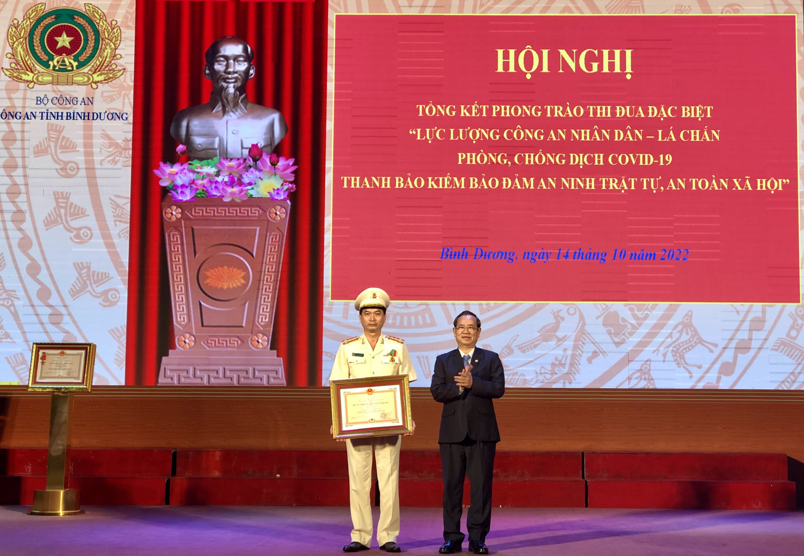 Với những thành tích đạt được, dịp này, Công an tỉnh Bình Dương được Chủ tịch nước tặng thưởng Huân chương Chiến công hạng Nhất trong phòng, chống dịch COVID-19, 1 cá nhân được tặng Huân chương Bảo vệ Tổ quốc hạng Ba, 1 cá nhân được tặng Huân chương Chiến công hạng Nhì. Thủ tướng Chính phủ tặng Bằng khen cho 4 tập thể và 10 cá nhân.