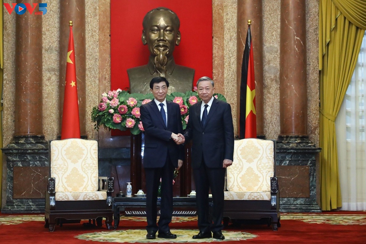 Chiều nay (25/7), tại Phủ Chủ tịch, Ủy viên Bộ Chính trị, Chủ tịch nước Tô Lâm tiếp ông Vương Hộ Ninh, Ủy viên Thường vụ Bộ Chính trị, Chủ tịch Chính hiệp toàn quốc Trung Quốc, Đại diện đặc biệt của Tổng Bí thư, Chủ tịch nước Tập Cận Bình, dẫn đầu Đoàn đại biểu Đảng, Nhà nước Trung Quốc sang dự Lễ Quốc tang Tổng Bí thư Nguyễn Phú Trọng.