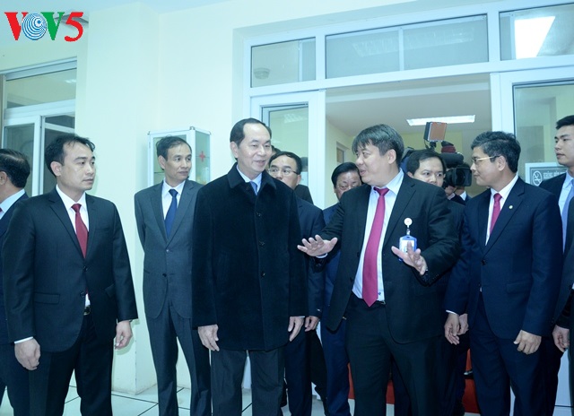 Chủ tịch nước Trần Đại Quang chúc Tết công ty lưới điện cao thế Hà Nội. Việt Cường/VOV |