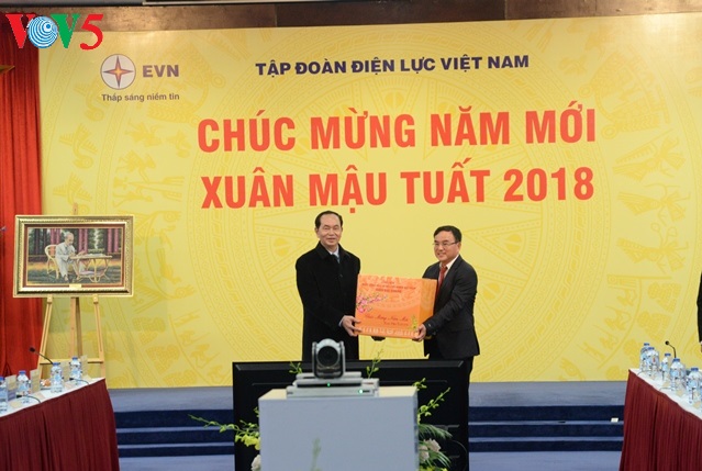 Đến thăm, kiểm tra công tác trực phục vụ Tết và chúc Tết cán bộ, công nhân làm việc tại Trung tâm Điều độ hệ thống điện quốc gia - Tập đoàn Điện lực quốc gia Việt Nam, Trạm biến áp 220 kV Tây Hồ, Chủ tịch nước Trần Đại Quang vui mừng khi thấy cán bộ, công nhân điện lực ứng trực chu đáo, không để sự cố làm ảnh hưởng đến an ninh, an toàn điện phục vụ nhân dân vui Xuân, đón Tết; đồng thời đánh giá cao sự chủ động của Tập đoàn Điện lực quốc gia Việt Nam trong việc chăm lo Tết cho cán bộ, công nhân, nhất là những người ứng trực trong dịp Tết.