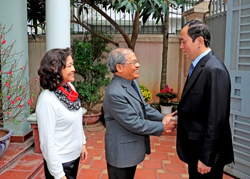 Chiều 12/02, Chủ tịch nước Trần Đại Quang đã đến thăm, chúc Tết Giáo sư, Tiến sĩ khoa học Nguyễn Khoa Sơn, nguyên Phó Chủ tịch Viện Hàn lâm Khoa học và Công nghệ Việt Nam; Giáo sư, Nhà giáo nhân dân Phan Huy Lê; Kiến trúc sư Nguyễn Trực Luyện, nguyên Chủ tịch Hội Kiến trúc sư Việt Nam.