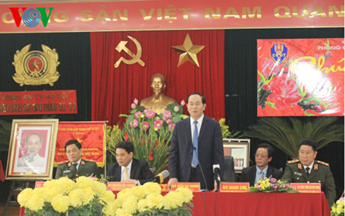 Tại buổi làm việc, Chủ tịch nước Trần Đại Quang chúc mừng những thành tích, chiến công mà cán bộ chiến sỹ Công an Hà Nội nói chung, lực lượng Cảnh sát giao thông Hà Nội nói riêng đạt được trong thời gian qua. Đồng thời đánh giá cao những đóng góp của Phòng Cảnh sát giao thông, năm qua đã có nhiều cố gắng, vượt khó khăn, hoàn thành xuất sắc nhiều nhiệm vụ quan trọng, giữ gìn trật tự an toàn giao thông và trật tự an toàn xã hội, góp phần vào sự nghiệp phát triển kinh tế , xã hội Thủ đô.