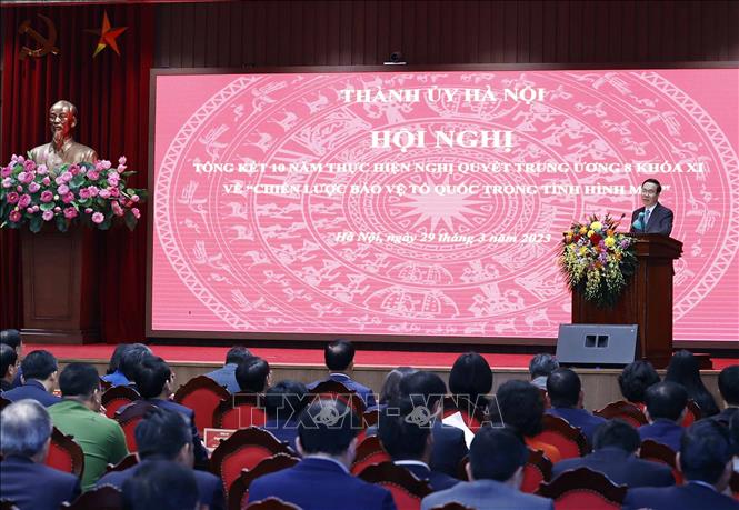 Sáng 29/03, tại Hà Nội, Thành ủy Hà Nội tổ chức tổng kết 10 năm thực hiện Nghị quyết Trung ương 8 khóa XI về Chiến lược bảo vệ Tổ quốc trong tình hình mới.