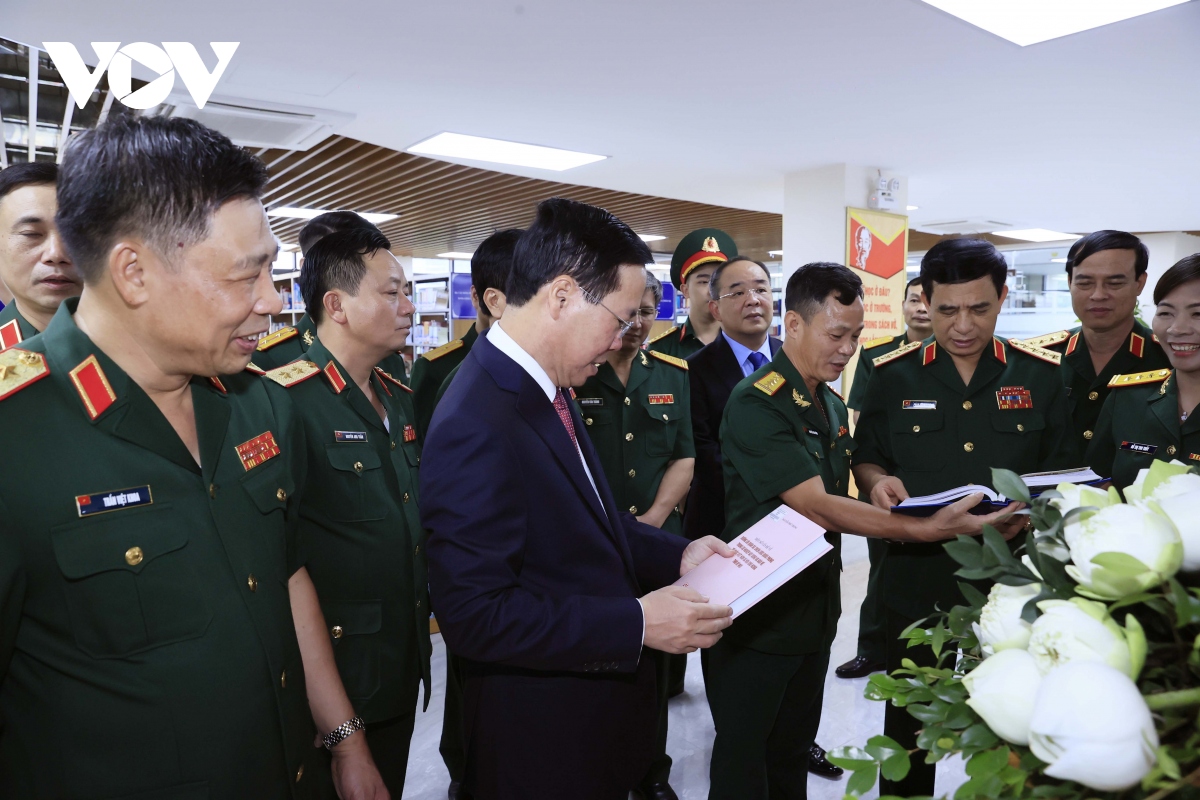 Chủ tịch nước Võ Văn Thưởng thăm Thư viện của Học viện Quốc phòng. Ảnh: VOV |