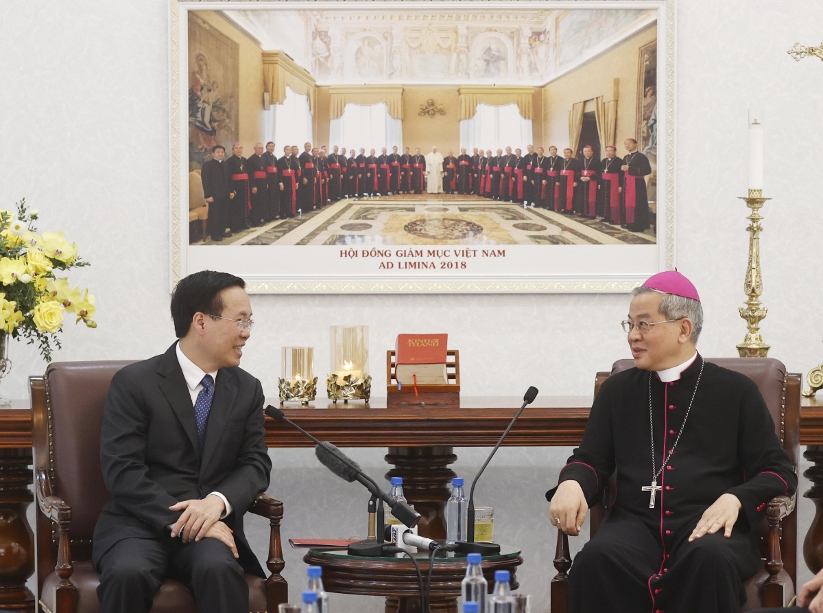Về phần mình, Tổng Giám mục Giuse Nguyễn Năng bày tỏ ấn tượng và chúc mừng Chủ tịch nước Võ Văn Thưởng về kết quả chuyến thăm Áo, Italy và Tòa thánh Vatican. Theo Tổng Giám mục Giuse Nguyễn Năng, chuyến thăm giúp nâng cao vị thế, uy tín quốc tế của Việt Nam và đưa quan hệ Việt Nam-Vatican bước vào giai đoạn phát triển mới, khi hai bên thông qua Quy chế hoạt động của Đại diện thường trú và Văn phòng Đại diện thường trú Tòa thánh tại Việt Nam. Tổng Giám mục Nguyễn Năng khẳng định cộng đồng Công giáo Việt Nam luôn đáp ứng lời kêu gọi của Giáo hội Việt Nam, Giáo hoàng, dấn thân phục vụ cộng đồng, xã hội và đất nước.