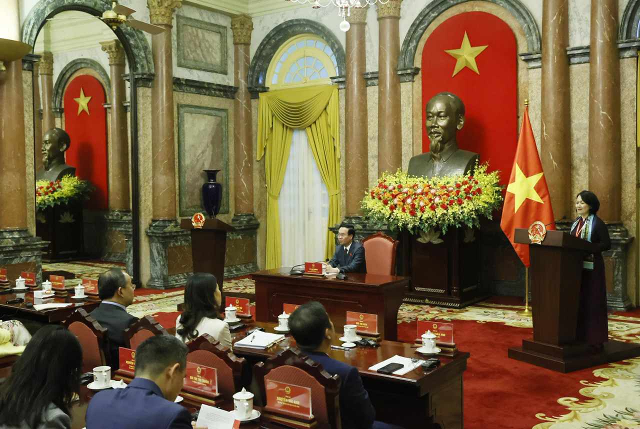Chủ tịch nước Võ Văn Thưởngphát biểu tại buổi tiếp. Ảnh: Văn phòng Chủ tịch nước.