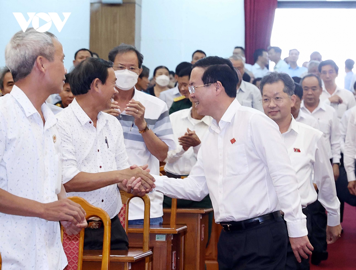 (VOV5) - Chiều nay (28/06), tại thành phố Đà Nẵng, Chủ tịch nước Võ Văn Thưởng cùng Đoàn đại biểu Quốc hội thành phố Đà Nẵng tiếp xúc cử tri các quận Hải Châu, Thanh Khê, Sơn Trà và Ngũ Hành Sơn để báo cáo kết quả Kỳ họp thứ 5, Quốc hội khóa XV.