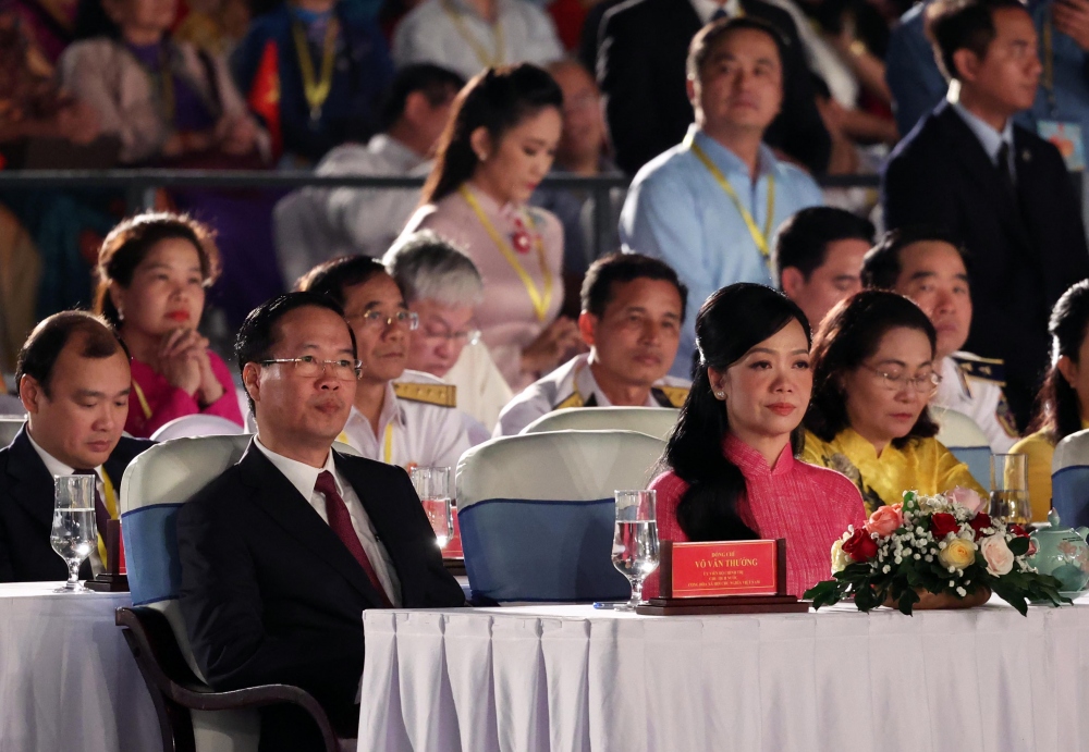 Chủ tịch nước Võ Văn Thưởng cùng Phu nhân dự chương trình Xuân Quê hương. Ảnh: VOV |