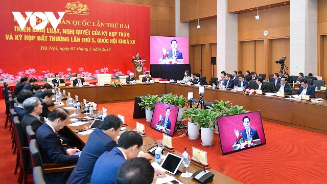 Hội nghị toàn quốc lần thứ hai triển khai luật, nghị quyết của Kỳ họp thứ 6 và Kỳ họp bất thường lần thứ 5, Quốc hội khóa XV. Ảnh: VOV |