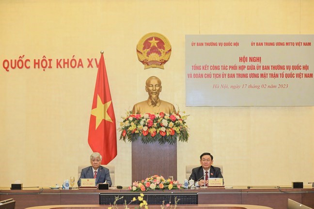 Thời gian qua, hai cơ quan đã tích cực phối hợp thực hiện một số cuộc vận động, chương trình lớn, tổ chức nhiều hội nghị phản biện xã hội về các dự án Luật quan trọng trong đó có Luật Đất đai (sửa đổi). Tại hội nghị, Chủ tịch Quốc hội Vương Đình Huệ đề nghị hai cơ quan tiếp tục tăng cường phối hợp, phát huy dân chủ, phát huy mọi khả năng sáng tạo của nhân dân để đẩy nhanh quá trình phục hồi, phát triển kinh tế - xã hội. Bất cứ ý kiến của người dân đều phải được tiếp thu giải trình.
