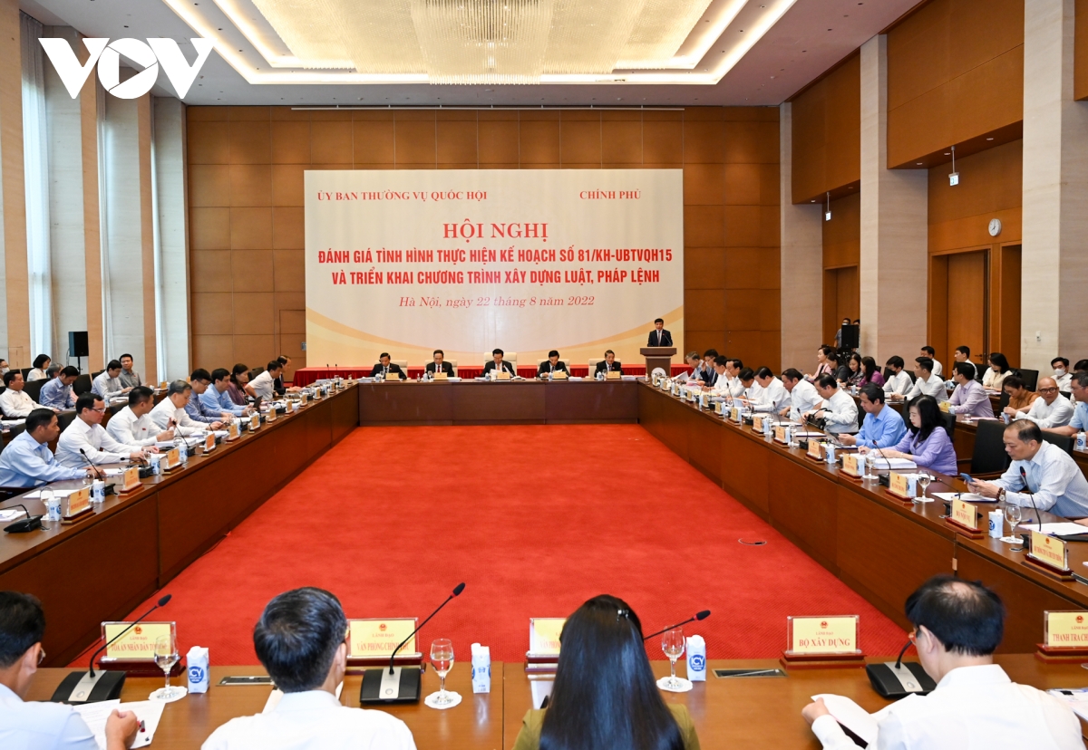 Hội nghị đánh giá tình hình thực hiện Kế hoạch số 81 và triển khai chương trình xây dựng luật, pháp lệnh. Ảnh: VOV |