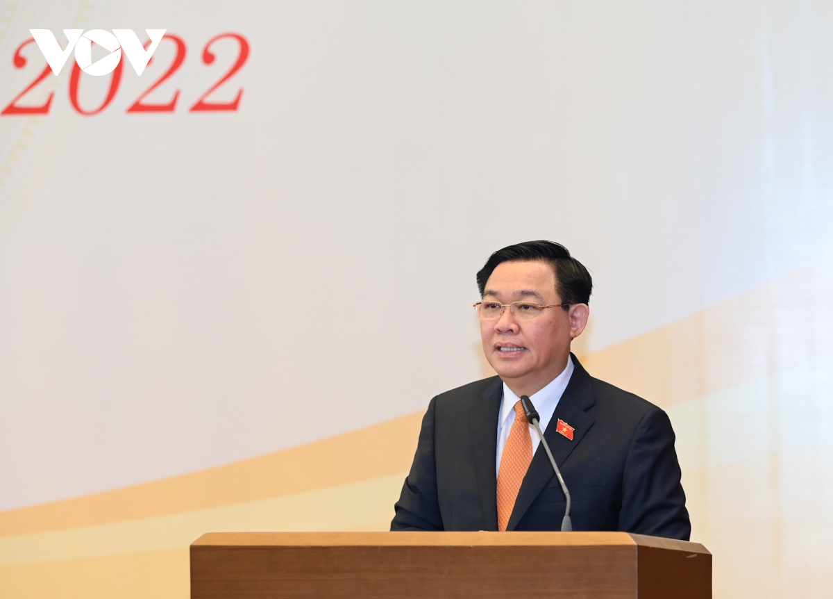 Chủ tịch Quốc hội Vương Đình Huệ phát biểu tại Hội nghị. Ảnh: VOV |