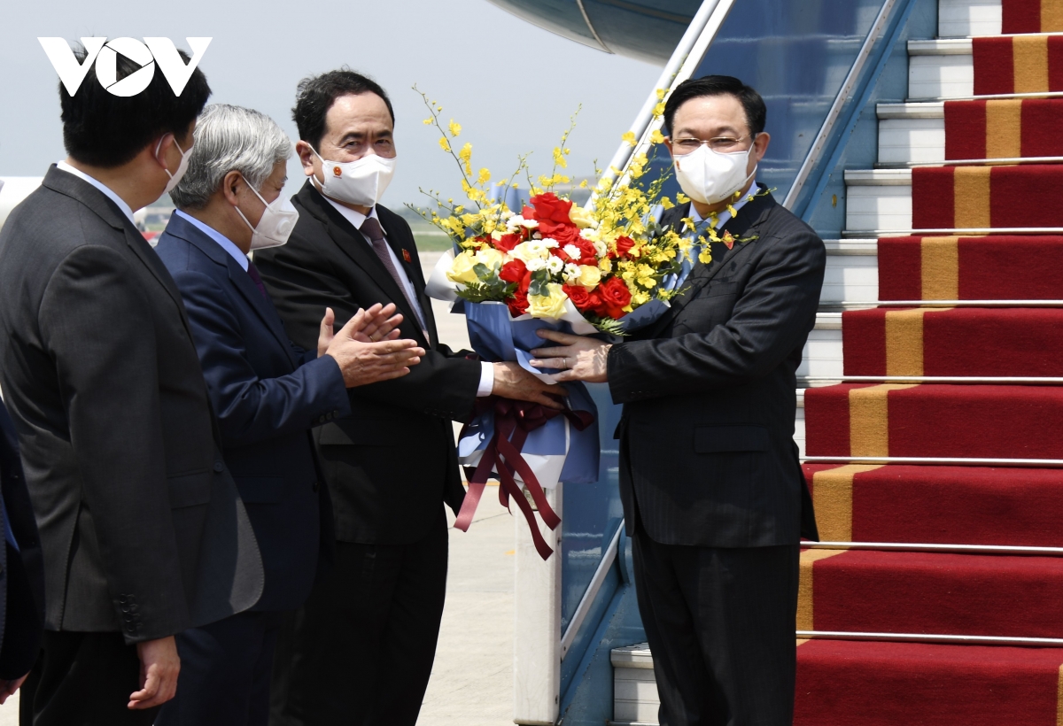 Vào lúc 12h30 phút trưa nay (12/9), máy bay HVN1 chở đoàn công tác cấp cao của Quốc hội Việt Nam do Chủ tịch Quốc hội Vương Đình Huệ dẫn đầu khởi hành từ Thủ đô Helsinki, Phần Lan đã đáp xuống sân bay Quốc tế Nội bài, kết thúc chuyến công tác Châu Âu (từ ngày 5-11/9/2021) để tham dự Hội nghị các Chủ tịch Quốc hội lần thư 5 tại Cộng Hòa Áo, kết hợp làm việc tại Bỉ, Liên minh Châu Âu và thăm chính thức Phần Lan.