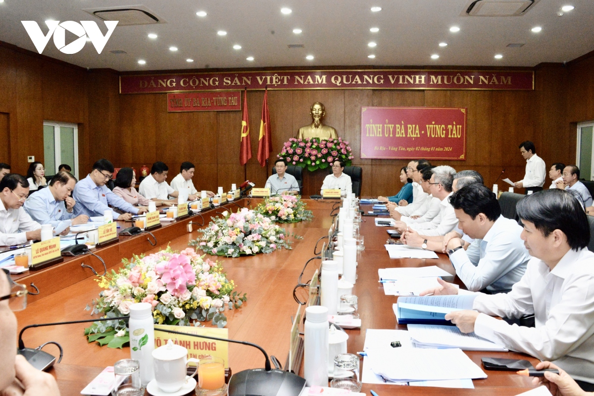 Chủ tịch Quốc hội Vương Đình Huệ làm việc với lãnh đạo Tỉnh ủy tỉnh Bà Rịa- Vũng Tàu. Ảnh: VOV |