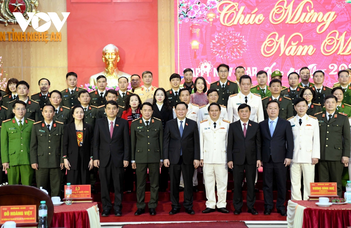Chủ tịch Quốc hội yêu cầu, Công an tỉnh Nghệ An tiếp tục quán triệt, triển khai hiệu quả các Nghị quyết, Chỉ thị của Đảng, chính sách, pháp luật của Nhà nước về công tác bảo đảm an ninh, trật tự. Đồng thời, khẩn trương tổ chức thi hành các luật mới được Quốc hội ban hành như: Luật sửa đổi, bổ sung một số điều của Luật Công an nhân dân; Luật Lực lượng tham gia bảo vệ an ninh, trật tự ở cơ sở; Luật Căn cước…