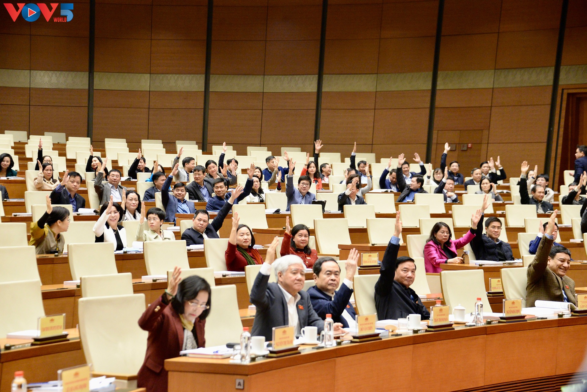 Các đại biểu biểu quyết tại hội nghị. Ảnh: Lê Tuyết/VOV |