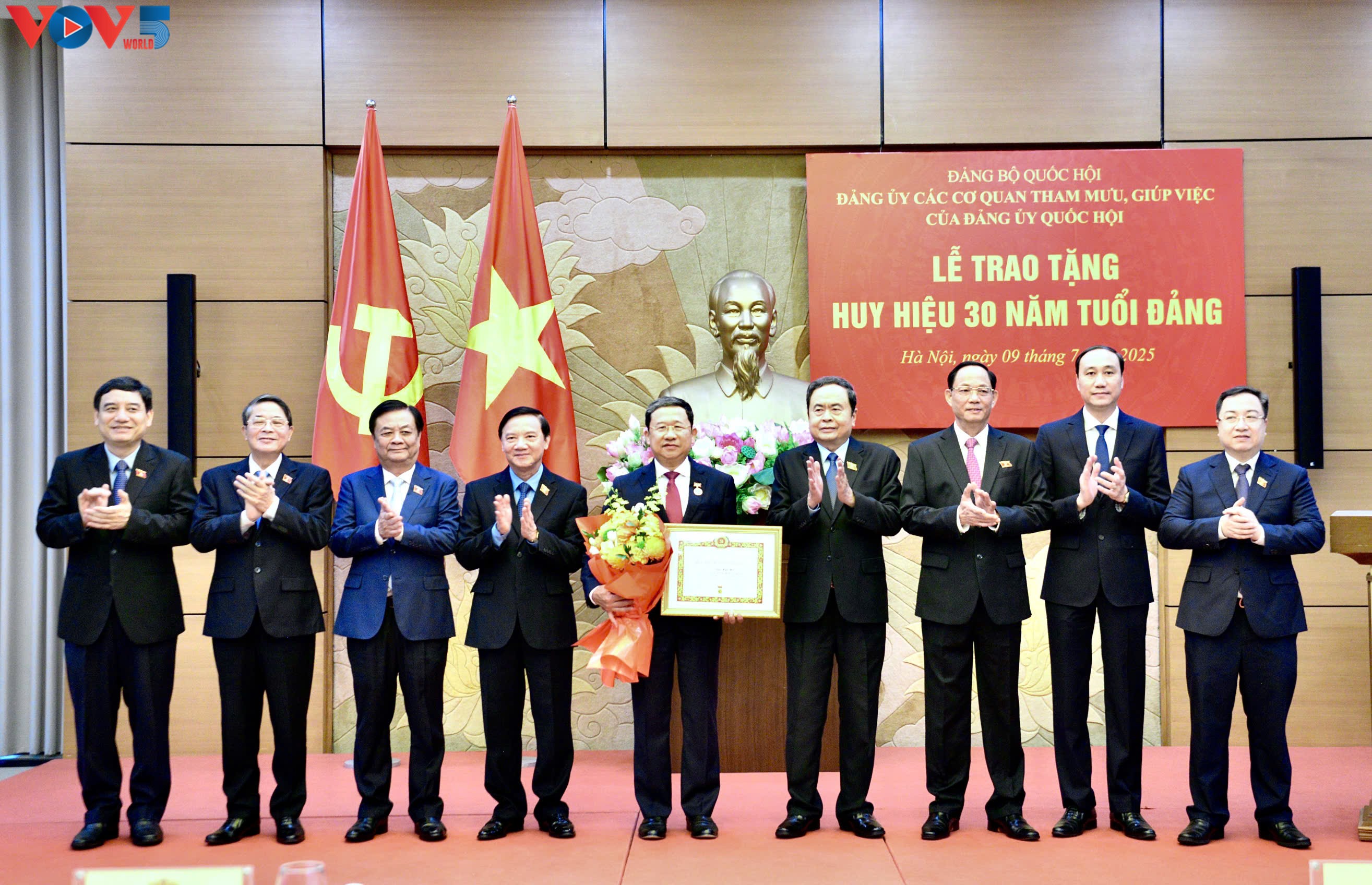 Chiều nay, 9/7, tại Nhà Quốc hội, Bí thư Đảng ủy, Chủ tịch Quốc hội Trần Thanh Mẫn dự Lễ trao tặng Huy hiệu 30 năm tuổi Đảng cho ông Vũ Hải Hà, Phó Bí thư Đảng ủy Quốc hội, Bí thư Đảng ủy các cơ quan tham mưu, giúp việc của Đảng ủy Quốc hội, Ủy viên Ủy ban Thường vụ Quốc hội.