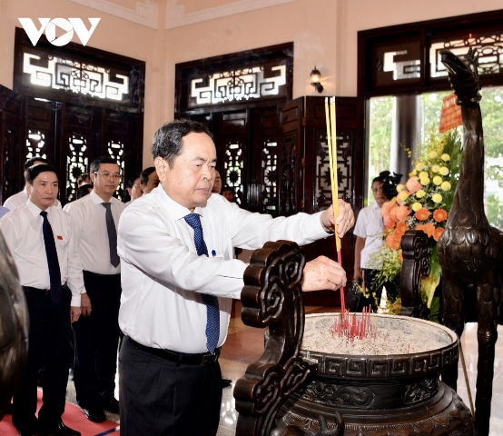 Chủ tịch Quốc hội Trần Thanh Mẫn dâng hương tại Khu Lưu niệm Chủ tịch Hội đồng Bộ trưởng Phạm Hùng. Ảnh: VOV |