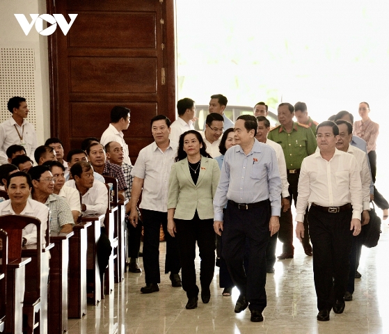 Chủ tịch Quốc hội Trần Thanh Mẫn tiếp xúc cử tri tại TP Ngã Bẩy, tỉnh Hậu Giang. Ảnh: Lê Tuyết/VOV |