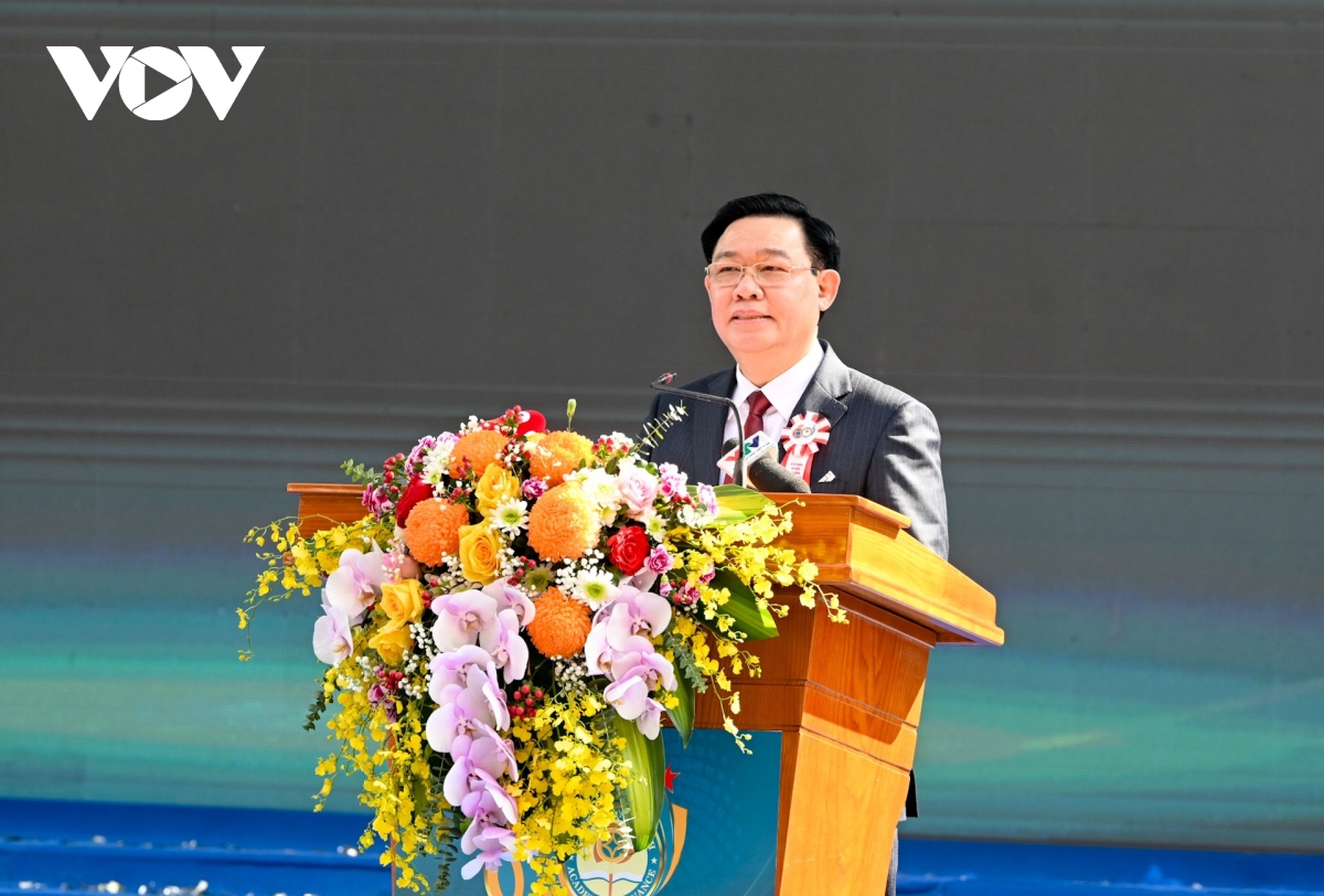 Ảnh: Chủ tịch Quốc hội Vương Đình Huệ phát biểu tại buổi lễ. Ảnh: VOV |