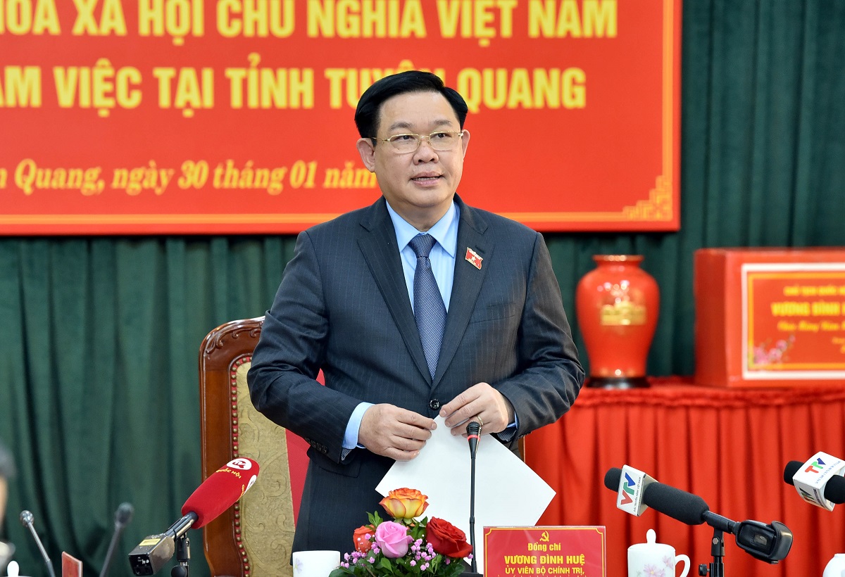 Phát biểu tại buổi làm việc với lãnh đạo chủ chốt tỉnh Tuyên Quang vào chiều nay (30/1) tại tỉnh Tuyên Quang, Chủ tịch Quốc hội Vương Đình Huệ nhấn mạnh cần đưa Tuyên Quang trở thành tỉnh phát triển khá, toàn diện, bền vững trong khu vực miền núi phía Bắc.