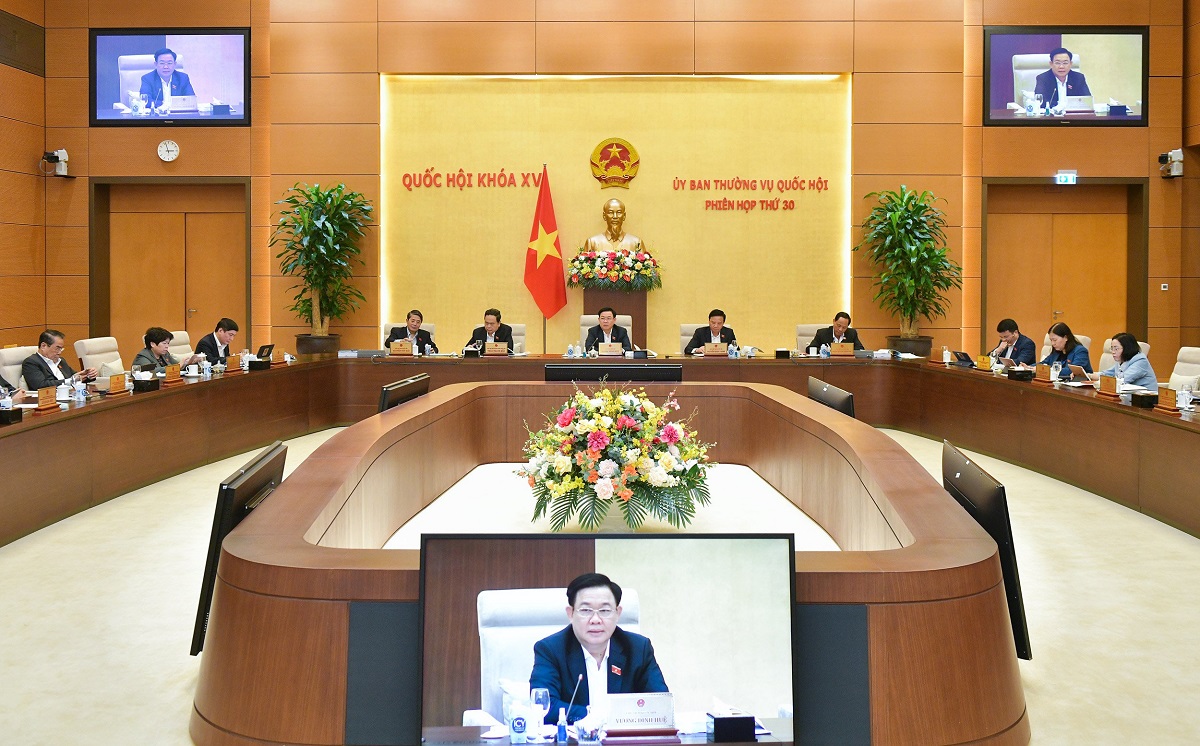 Phiên họp lần thứ 30 Ủy ban thường vụ Quốc hội họp phiên bế mạc, chiều 22/2/2024. Ảnh: quochoi.vn |
