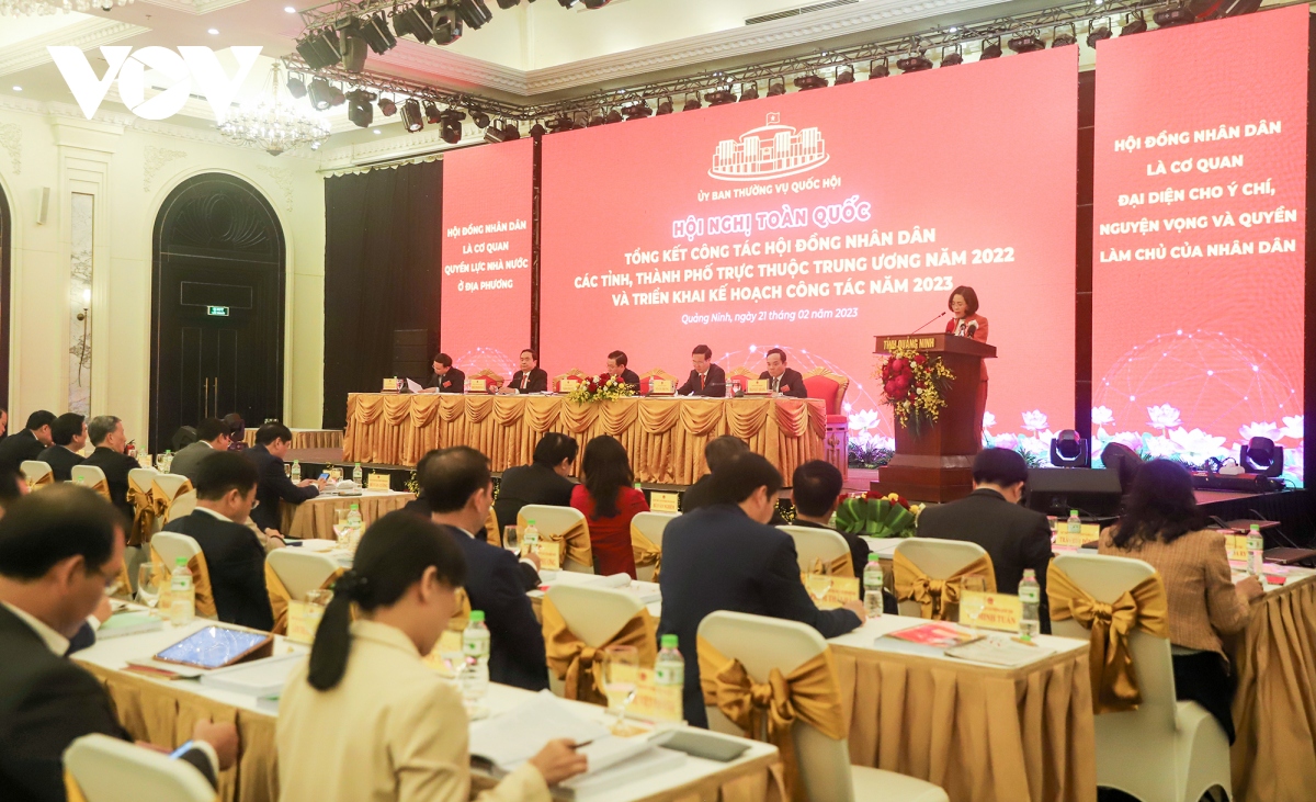 Hội nghị toàn quốc tổng kết công tác Hội đồng nhân dân các tỉnh, thành phố trực thuộc Trung ương năm 2022 và triển khai kế hoạch công tác năm 2023. Ảnh: VOV |