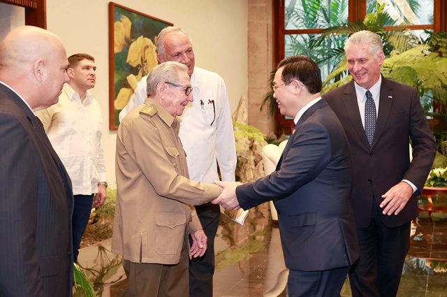 Hôm qua (20/4) theo giờ địa phương, tại Cung Cách mạng Cuba ở Thủ đô La Habana, Chủ tịch Quốc hội Vương Đình Huệ hội kiến Lãnh tụ cách mạng Cuba, Đại tướng Raúl Castro Ruz và Bí thư thứ nhất, Chủ tịch Cuba Miguel Díaz-Canel.