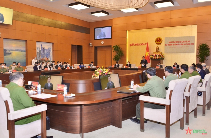 Phát biểu tại buổi làm việc, Chủ tịch Quốc hội Vương Đình Huệ nhấn mạnh, với tư cách là một lực lượng trong lực lượng vũ trang rất quan trọng, là thanh bảo kiếm của Đảng, Nhà nước, lực lượng công an thực hiện chức năng của mình theo Hiến pháp, pháp luật nói chung, theo các chủ trương, chính sách của Đảng và Nhà nước về đẩy mạnh xây dựng lực lượng công an nhân dân thật sự trong sạch, vững mạnh, chính quy, tinh nhuệ, hiện đại đáp ứng yêu cầu nhiệm vụ trong tình hình mới. Vì vậy, nhiệm vụ xây dựng pháp luật, tiếp tục hoàn thiện hệ thống pháp luật trực tiếp đáp ứng mục tiêu, yêu cầu đặt ra. Đây cũng chính là nhiệm vụ rất quan trọng trong công tác của Quốc hội nói chung, và trong nhiệm kỳ Quốc hội khóa 15.