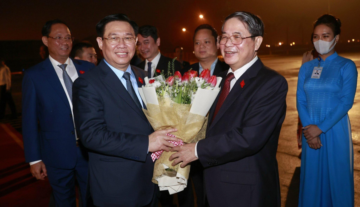 Phó Chủ tịch Quốc hội Nguyễn Đức Hải tiễn Chủ tịch Quốc hội Vương Đình Huệ và Đoàn công tác lên đường làm nhiệm vụ - Ảnh: VOV |