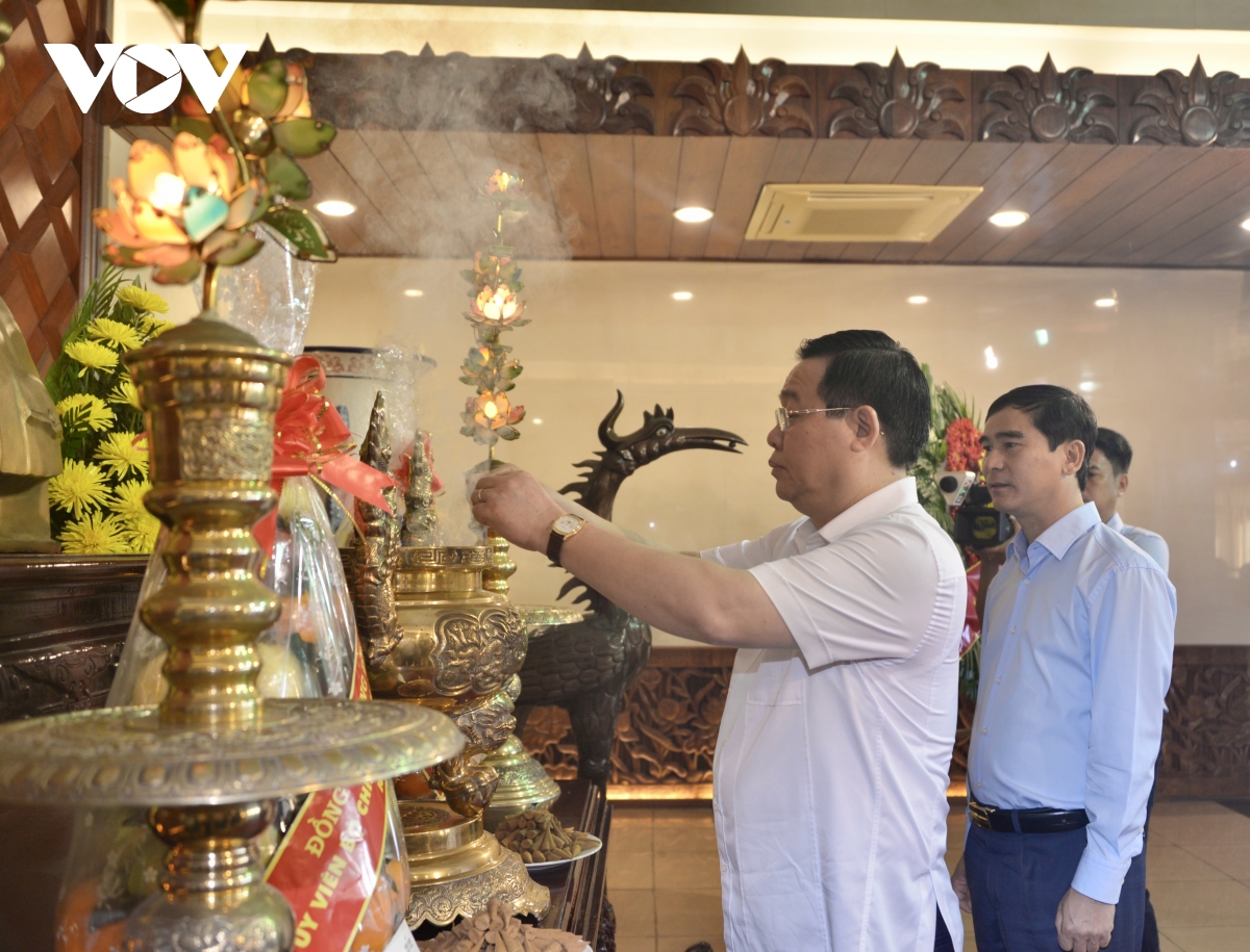 Trước đó, sáng nay, Chủ tịch Quốc hội Vương Đình Huệ và đoàn công tác đã dâng hương, dâng hoa Chủ tịch Hồ Chí Minh tại Bảo tàng Hồ Chí Minh - chi nhánh Bình Thuận và thăm khu di tích Trường Dục Thanh tại thành phố Phan Thiết, tỉnh Bình Thuận.