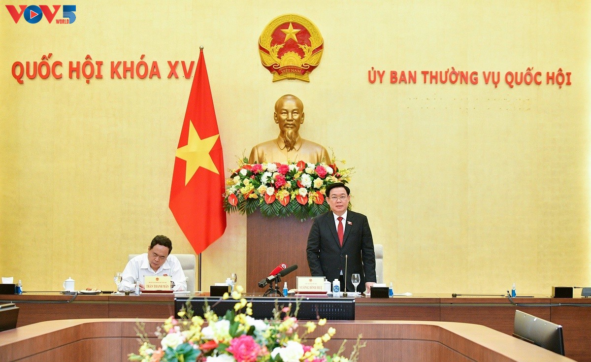 Chủ tịch Quốc hội Vương Đình Huệ chủ trì phiên họp về công tác chuẩn bị tổ chức Hội nghị Nghị sĩ trẻ toàn cầu lần thứ 9, ngày 27/6. Ảnh: VOV |