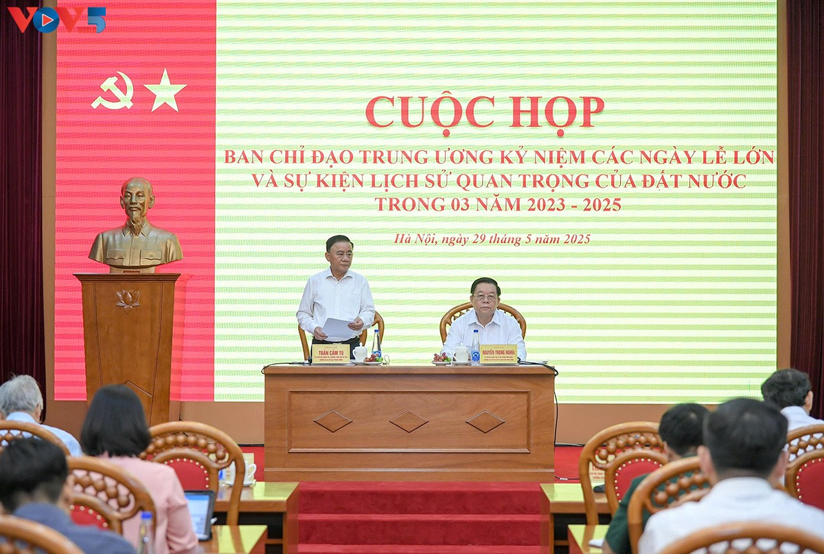 Đây là yêu cầu của Thường trực Ban Bí thư Trần Cẩm Tú, Trưởng ban chỉ đạo Trung ương kỷ niệm các ngày lễ lớn và sự kiện kịch sử quan trọng của đất nước, tại cuộc họp tổng kết rút kinh nghiệm công tác tổ chức Lễ kỷ niệm 50 năm Ngày giải phóng miền Nam (30/04/1975 – 30/04/2025) và triển khai các hoạt động kỷ niệm 80 năm Quốc khánh (02/09/1945 – 02/09/2025), tổ chức hôm nay (29/05), tại Hà Nội.