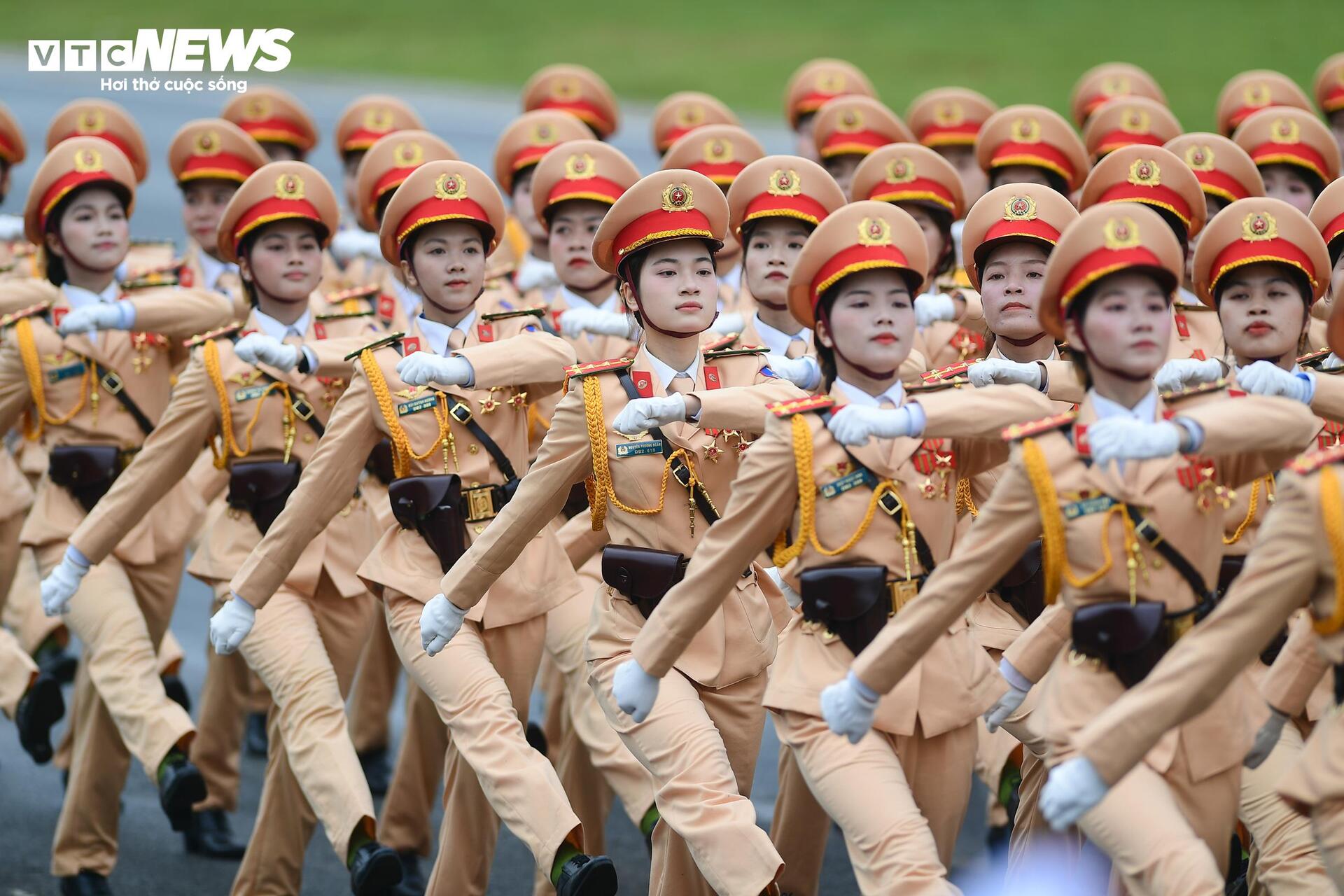 Khối chiến sĩ Cảnh sát nhân dân tham gia Tổng hợp luyện lần thứ tư các lực lượng diễu binh, diễu hành trong Lễ kỷ niệm 80 năm Cách mạng Tháng Tám và Quốc khánh 2/9. Ảnh: VTCnews |