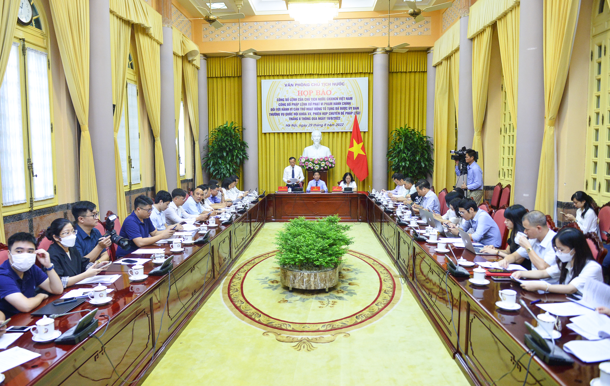 (VOV5) - Sáng 29/8, tại Hà Nội, Văn phòng Chủ tịch nước tổ chức họp báo công bố Lệnh của Chủ tịch nước công bố Pháp lệnh Xử phạt vi phạm hành chính đối với hành vi cản trở hoạt động tố tụng.