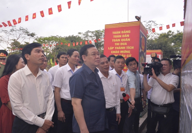 Chủ tịch Quốc hội, Chủ tịch Hội đồng bầu cử quốc gia Vương Đình Huệ tới thăm xã Kiến Thiết và huyện Tiên Lãng, Thành phố Hải Phòng. Ảnh: VOV |